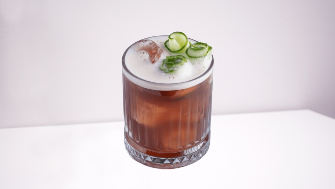 Άσπρη τεκίλα, reposado τεκίλα, φράουλα, ζάχαρη, μοσχολέμονο, orange curacao και Aperol
